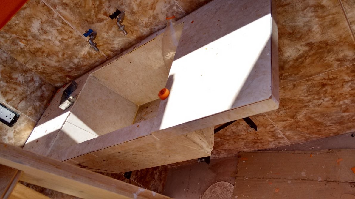 con mesada, bajo mesada, escalera caracol de hierro de acceso a planta alta. En planta alta: