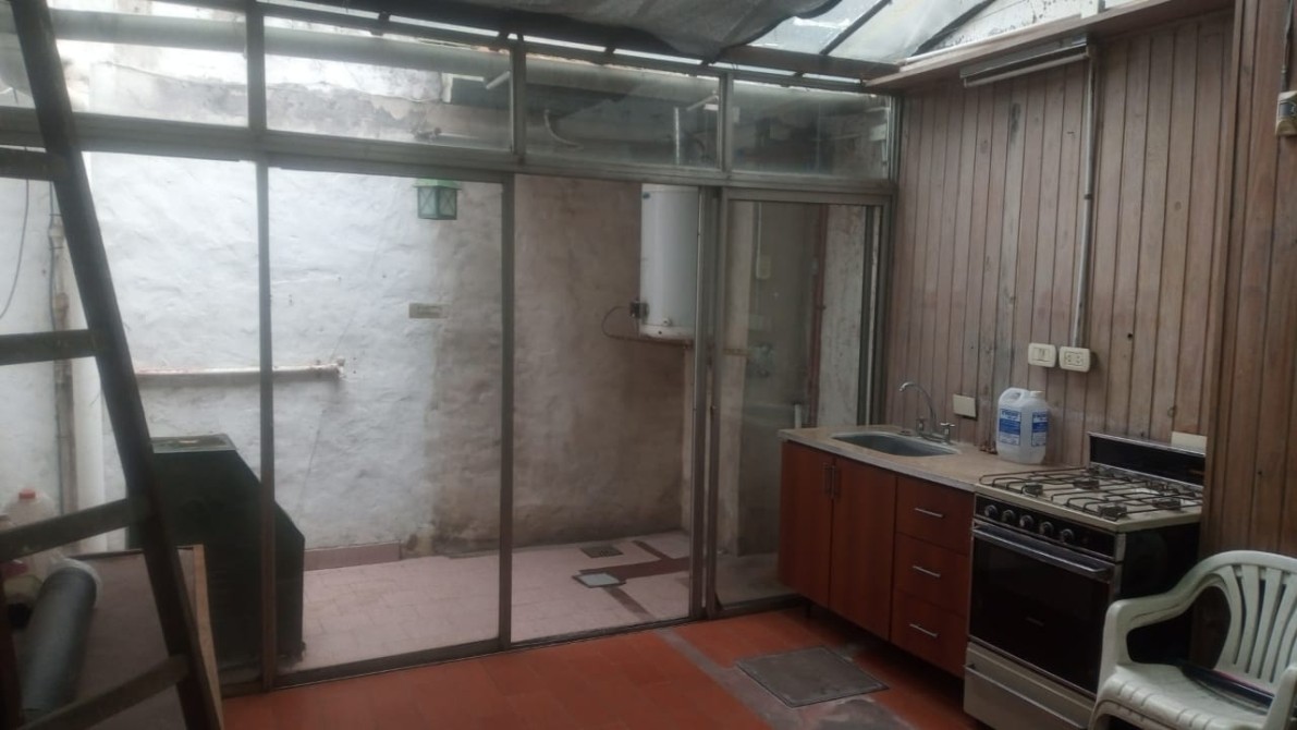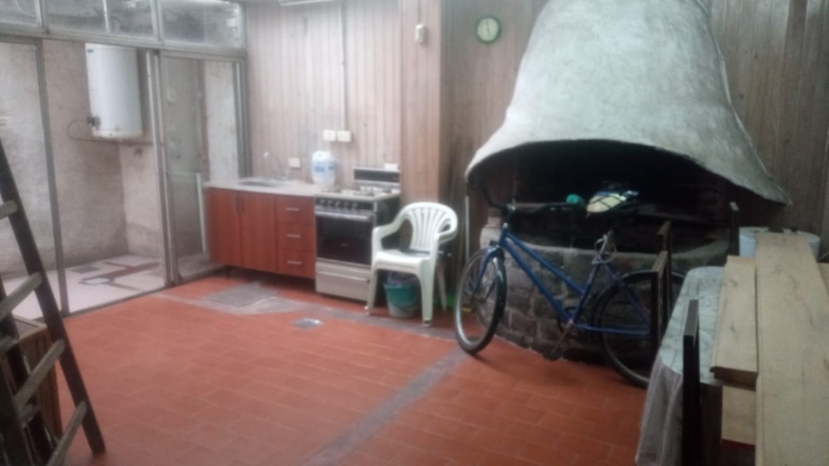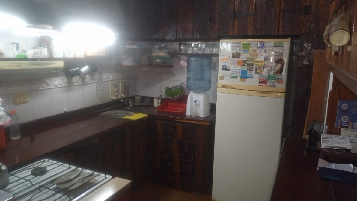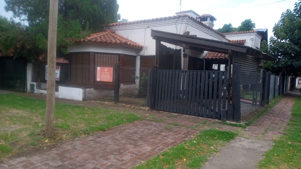 Planta baja: Amplio Jardín al frente. Hall de entrada. Living muy cómodo, con pisos de madera entarugada. Estar – comedor diario con 2 grandes ventanales que dan al jardín. Cocina instalada completa, con desayunador, muebles bajo y sobre mesada estilo campo. Lavadero interno con muebles de guardado. Salida a gran patio. Con lugar de guardado. Largo pasillo de distribución. Baño totalmente instalado con ducha. Dormitorio grande, con placard empotrado. Ambiente de estudio o posible escritorio. Amplia Cochera para dos autos con acceso con portón de madera, y quincho integrado con parrilla, horno de barro, cocina y patio. Entrada de auto por la esquina, con techo y portón de madera.